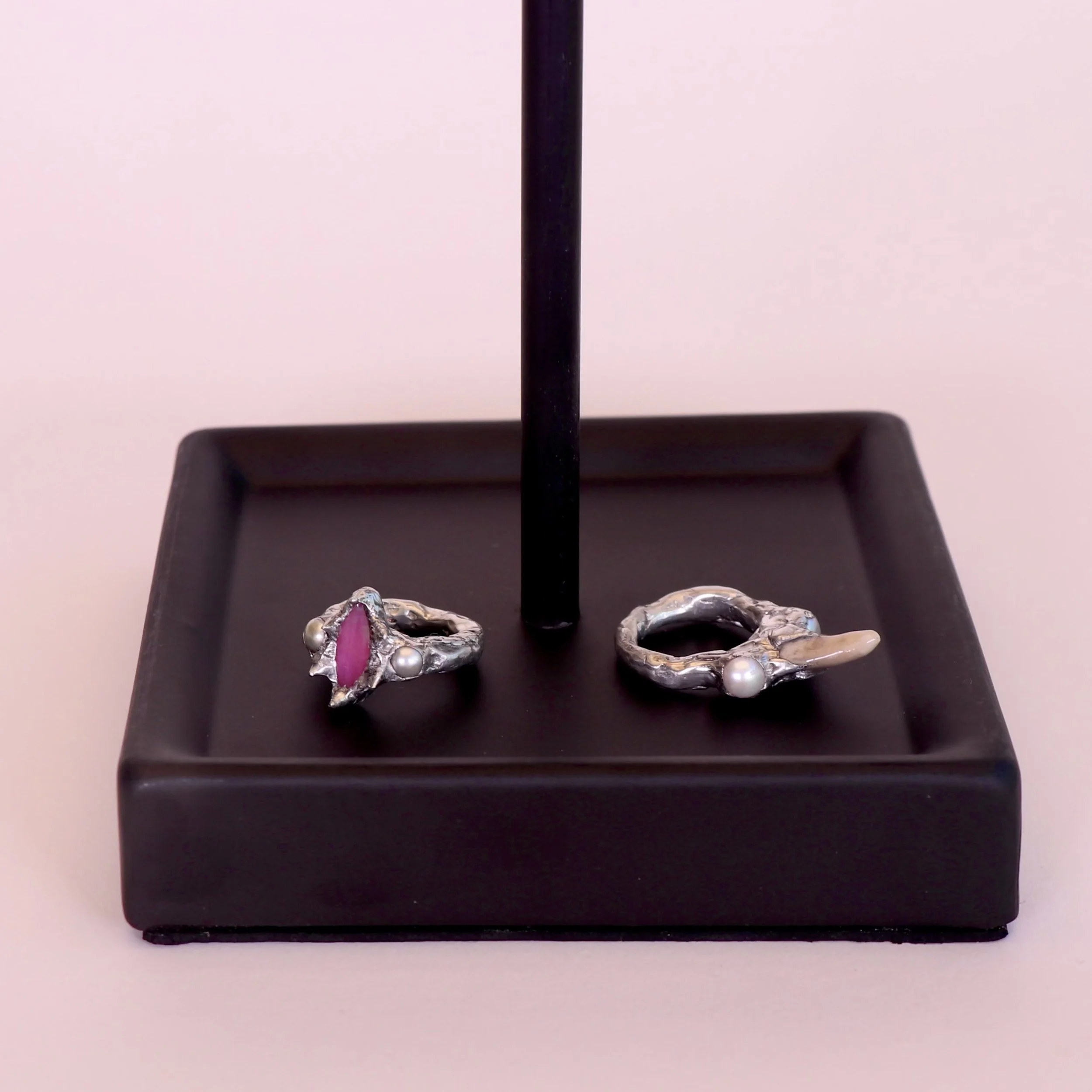 tin, sterling silver, glass, teeth, freshwater pearls, UV resin
